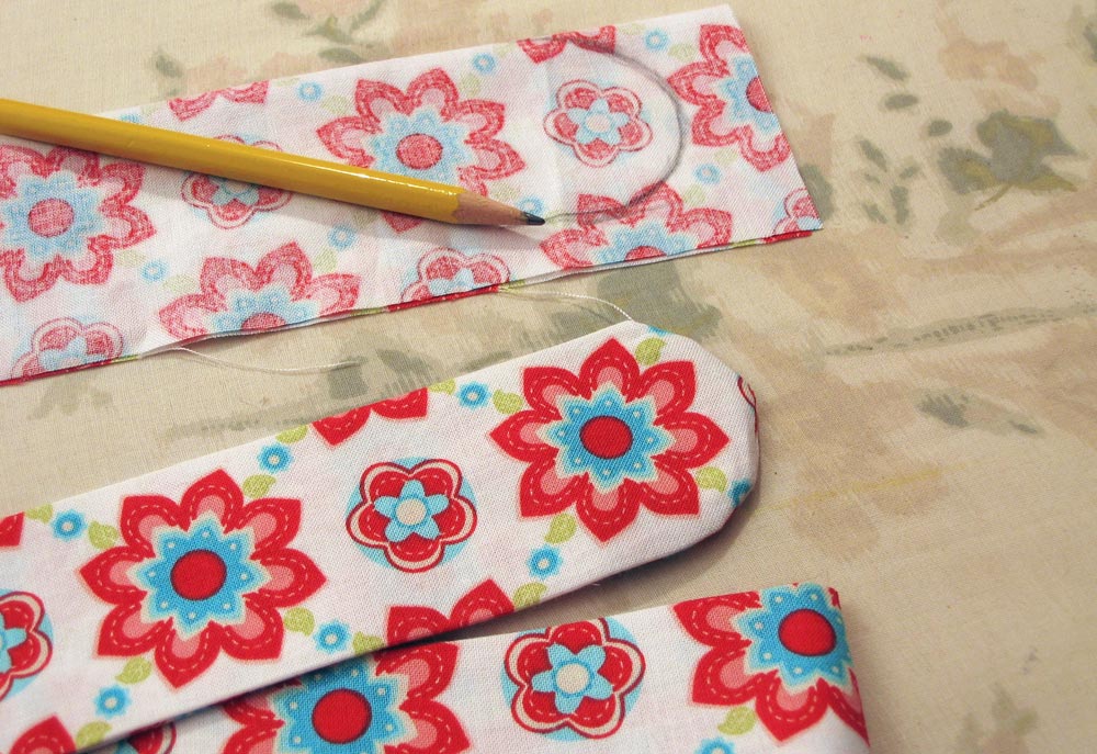 - Turn both ties right side out. Smooth out the curve with a long, blunt tool, like a chopstick or knitting needle.
