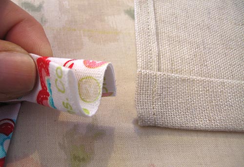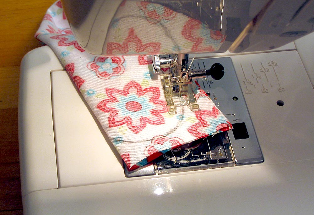 - Stitch the hem in place close to the folded edge. Just stitch straight across; do not stitch the ends closed. You’ll be inserting the ends of the ties into those little openings.