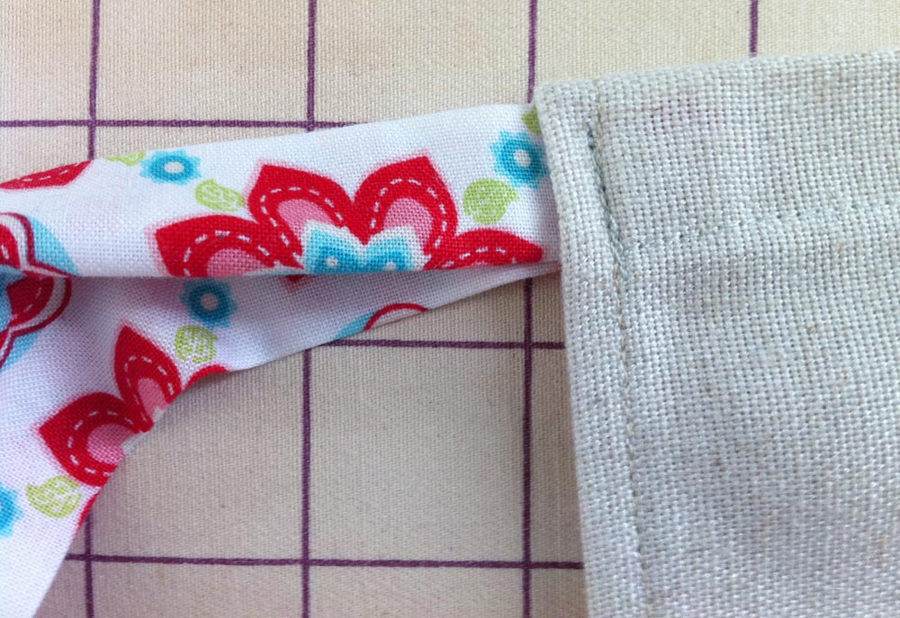 With Janome as our machine sponsor, we are lucky to always get to sew on Janome machines, which are known for their powerful motors and precise needle penetration. We were able to stitch this apron’s tiny side seams with no problem – even over the bulky points. This may not be the case on other models. We would suggest testing your machine with a multiple layer “mock-up” first. Or, better yet, we would recommend getting/using a Janome. Remember: the better your tools, the better the finished project.