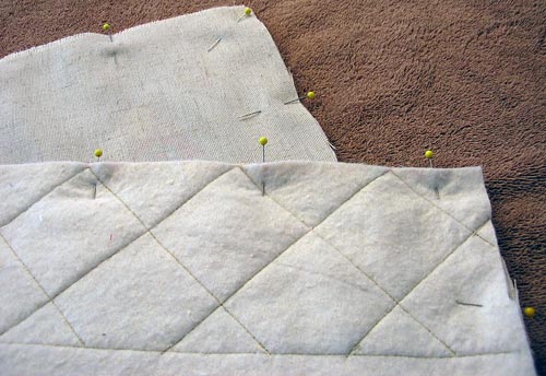 - Center one of the pieces of base fabric (natural linen in our sample) right side up on the batting.