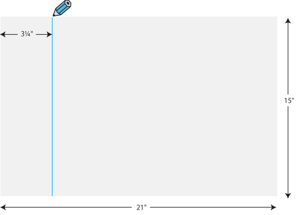 - With your fabric pencil, draw a line along the left side of the base piece 3¼” in from the raw edge.