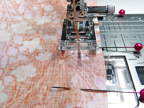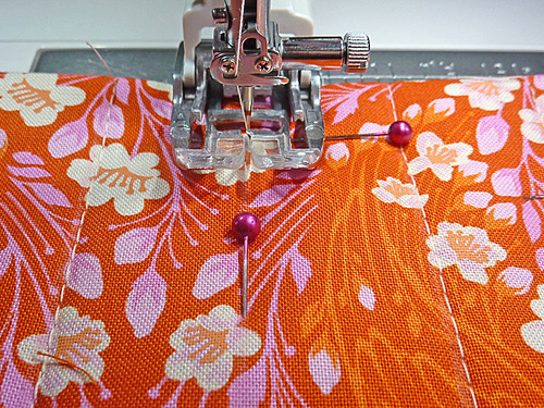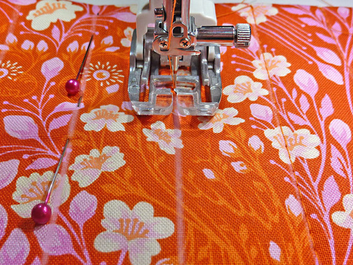 - We recommend pinning along the #2 guidelines. Pinning along these three lines is plenty to keep the layers from shifting and it will help you remember to not stitch these lines quite yet.