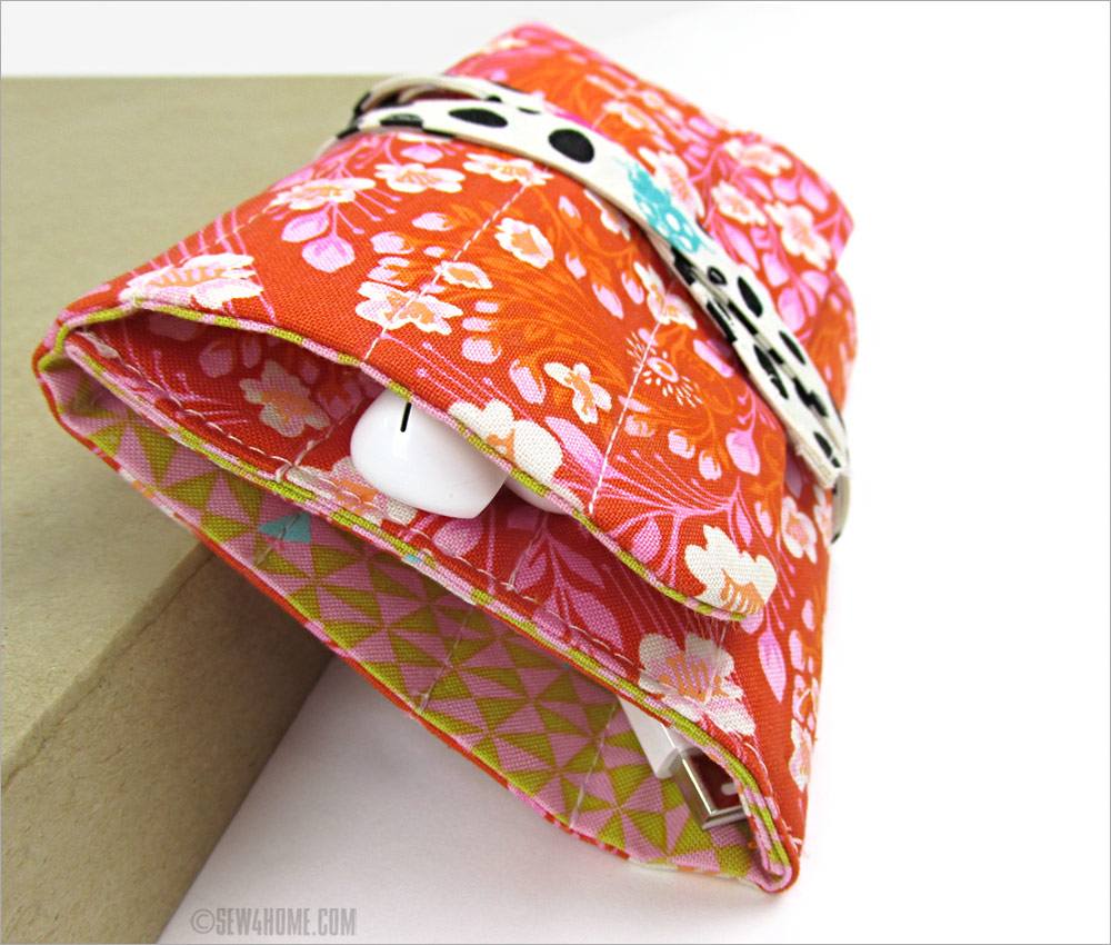 As you can see from the in-use photos, the pockets are sized to best fit standard tech accessories for both PCs and MACs, like ear buds, wire-free AirPods, memory sticks, adaptors, and more. We’ve included our suggested divisions, but as always, you’re welcome to adjust these to best fit your accessories. The quilting lines look best with a single line of stitching, so keep that in mind if altering the inside pocket divisions.