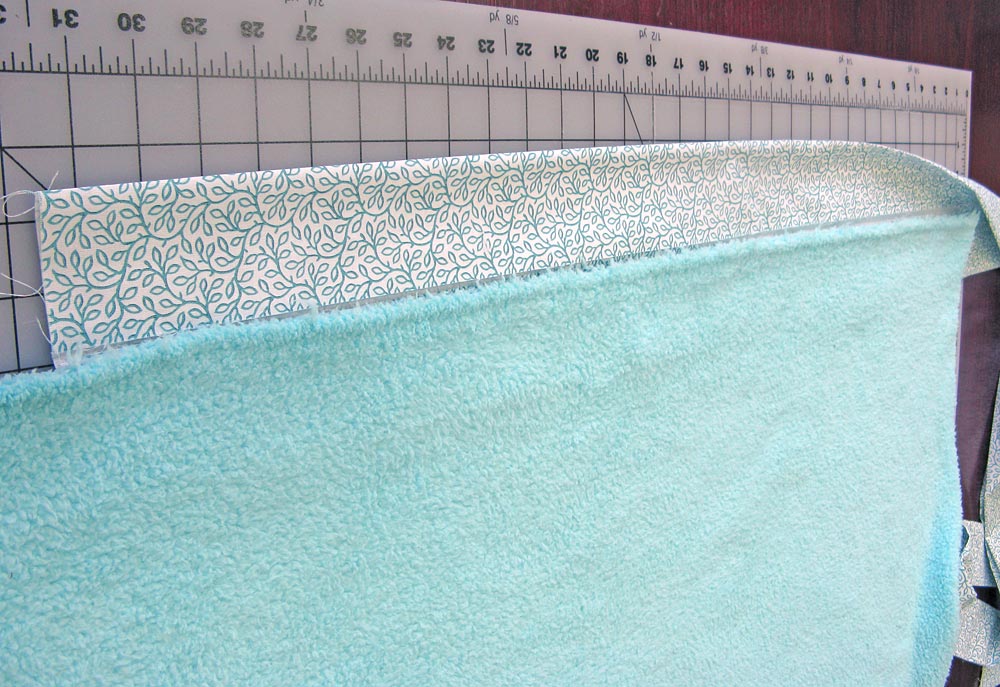 - Be very careful that your middle fold is right on the edge of the fleece and your binding is even on both sides.