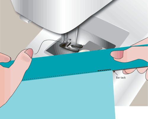 - Return to your machine, and matching your first line of stitching, edgestitch around the corner and down the side to the next corner. Stop at that corner and lock your stitch.