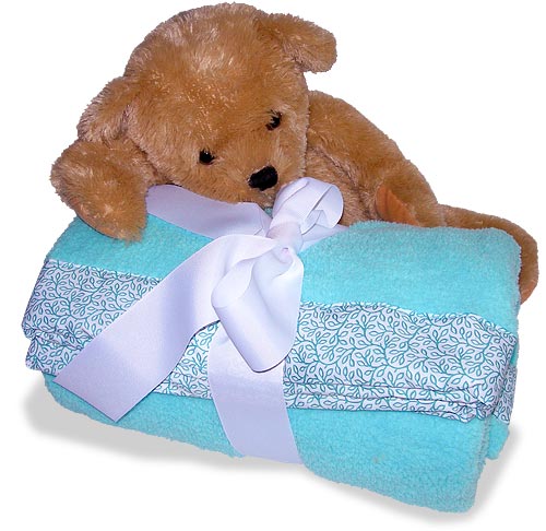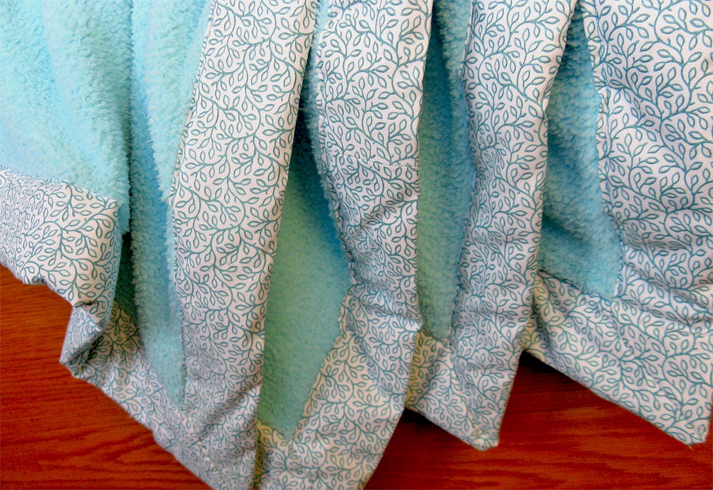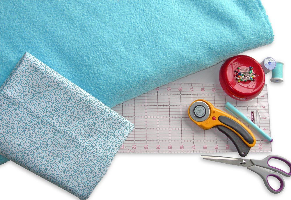 - 1¾ yard of 58-60″ wide double-sided, soft fleece: we originally used Minky Marshmallow in Turquoise from Minky Delight