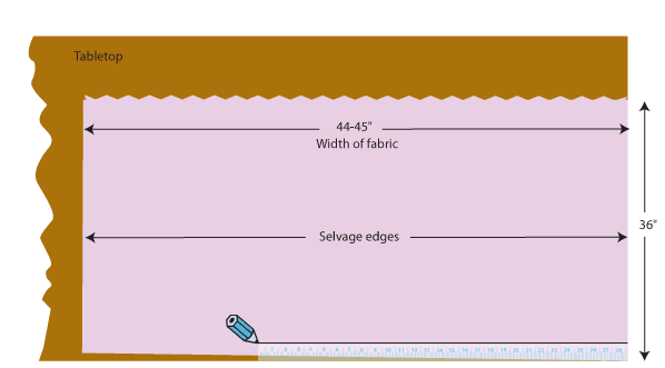 - There are several ways to do this, but one easy way is to lay the fabric flat on your work surface, aligning the selvedge edge along one straight edge of a table. Place the fabric right side up, and if you are using a directional design, make sure the bottom of the design is facing the bottom of the table.