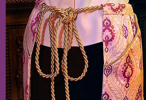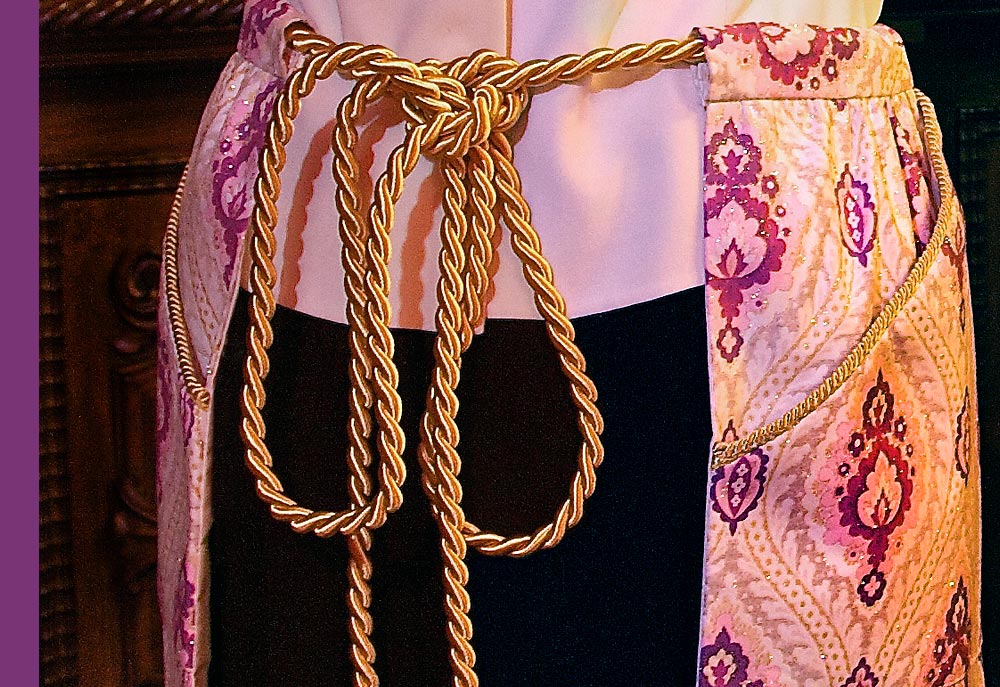 - The waistband on this apron is really just a casing for the big gold cord to pass through.