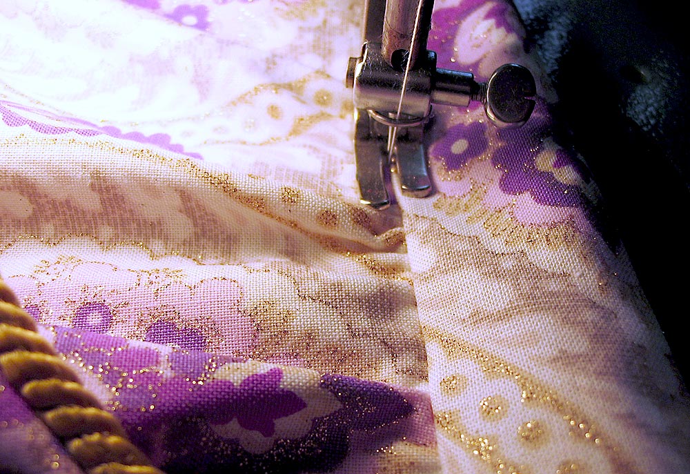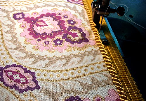 - Using a Zipper foot, stitch the cord in place, staying as close to the cord as possible.