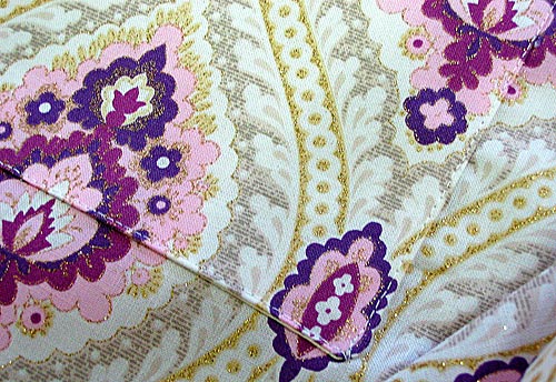 This fabric, from Michel Miller’s Antiquity Collection, is so lovely, you don’t want or need any distractions. We chose to design a classic half apron with clean, simple lines to showcase the stunning motifs with their sparkling gold metallic accents. Kathy Miller, co-owner of Michael Miller Fabrics and the designer of this fabulous collection, described it as ‘Dr. Zhivago meets Anthropologie.’ A perfect image… although now I’m tempted to wear it with one of those giant Russian fur hats. Faux fur, of course.