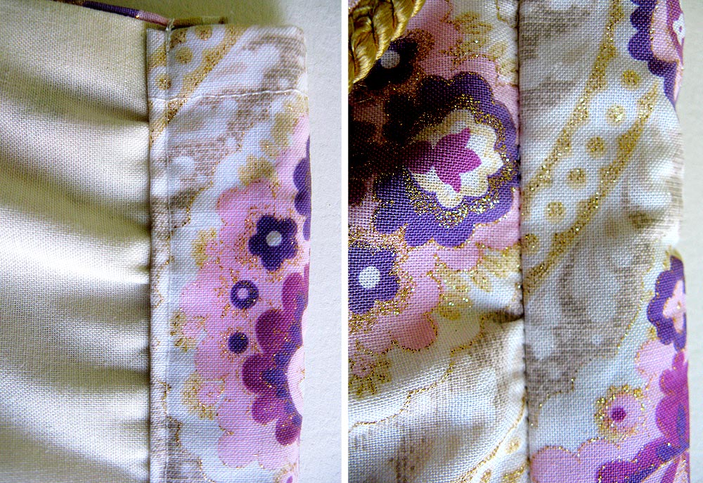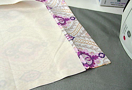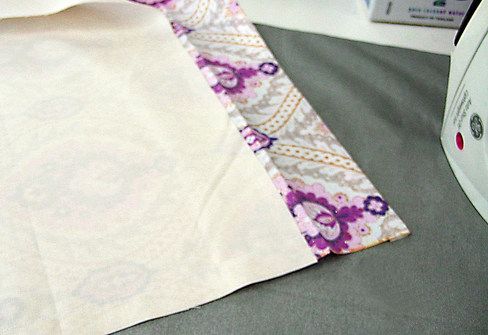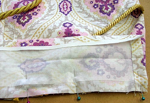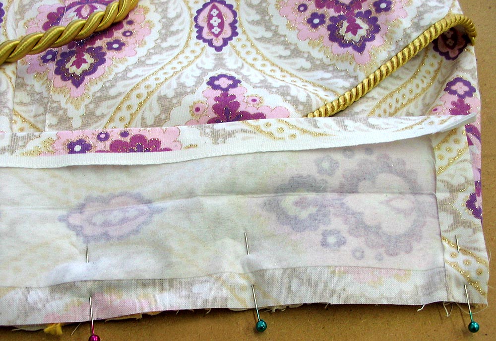 - Re-fold the hem up and over the lining. Press again. Pin in place, and edgestitch along the top folded edge.