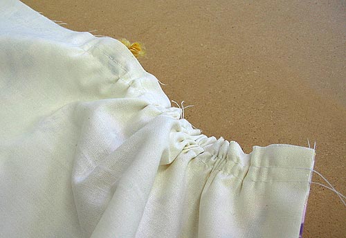 - Remove the gathering’s basting stitches (you can do this because you didn’t back tack them… right?).