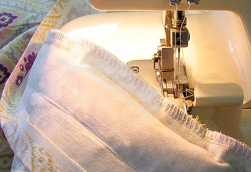 - If you have a serger, this is a good time to use it to clean up the ravelly top edge of the skirt edges. If you don’t have a serger, just go over the raw edge once with a zig-zag stitch.