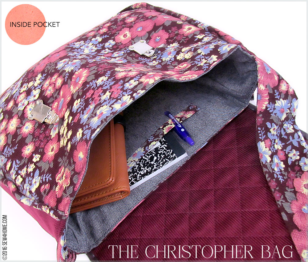 One of my childhood heroes was Christopher Robin, Winnie the Pooh’s best friend. The reasons are many, not the least of which is the fact he had the most awesome wardrobe, full of vintage short sets and rain slickers with matching boots for stomping in puddles while walking through the Hundred Acre Wood. The soft satchel style of this bag and its cool two-part latches reminded me of Christopher Robin, and so we have: The Christopher Bag. Feel free to carry it as you stomp across a mud puddle or kick though a pile of leaves… or just while you’re out and about for work or school. The bag’s exterior is done in quilted corduroy, one of the very best fabrics for Fall, giving it a lovely soft slouch Christopher Robin would love.