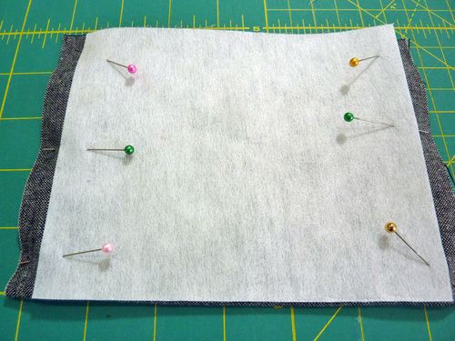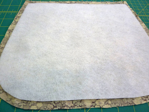 - In the same manner, center a fleece panel on the wrong side of one of the flap panels and fuse in place.