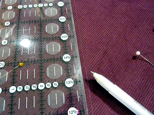 NOTE: Anytime you are working with a marking tool on the right side of the fabric, make sure you choose a pen or pencil that will easily wipe away or vanish with exposure to the air or the heat of an iron.