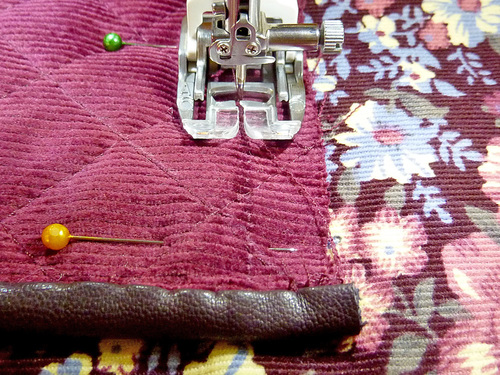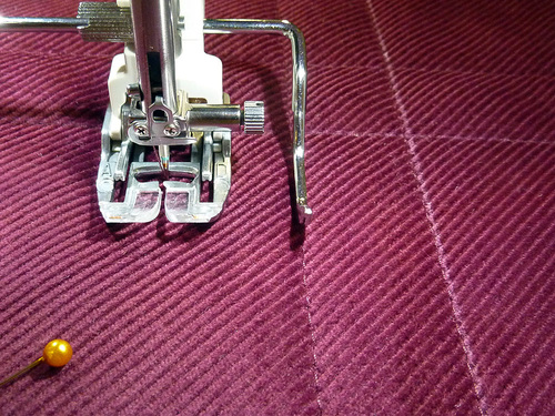 - Re-thread the machine with thread to best match the exterior in the top and to best match the lining in the bobbin. Lengthen the stitch.