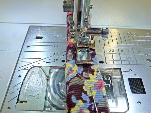 - If necessary re-thread the machine with thread to best match the piping fabric in the top and bobbin. Re-set for a standard straight stitch.