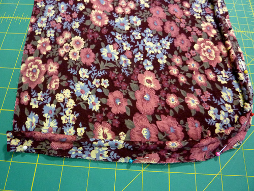 - The folded edge should cover the original seam line. Pin or clip in place.
