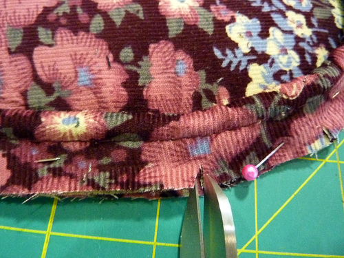 - Trim back the flap seam allowance to about ⅛”.