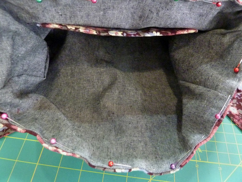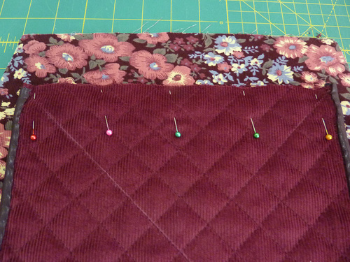 - Align the side panel seams and the top folded edges. These folded edges should be perfectly flush. If they are not, adjust the fold of the lining to get an exact match. Pin the layers together all around.