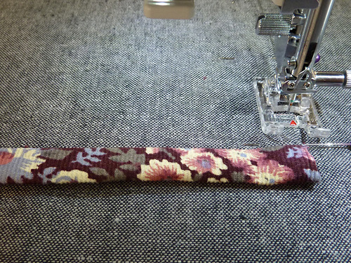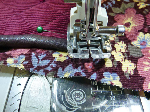- Attach a Zipper foot and stitch close to the cord to create your fabric covered piping.