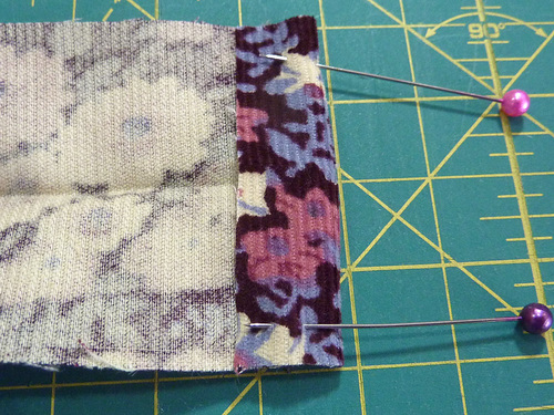 - Separate into two pairs, and place each pair right sides together. Pin together.
