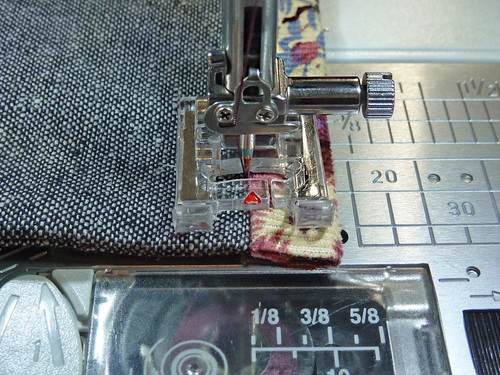 - The machine should still be threaded with thread to best match the flap in the top and bobbin. Re-set the stitch length to normal.