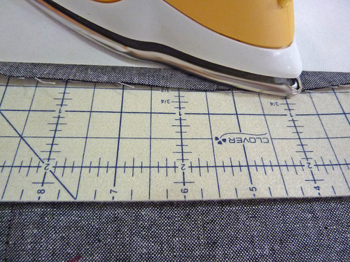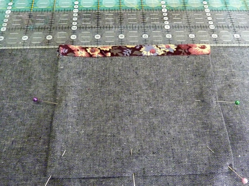 - Using a ½” seam allowance (½” from the raw edge of the flap) stitch across the flap. This means the seam itself is 2½” from the top raw edge of the panel.