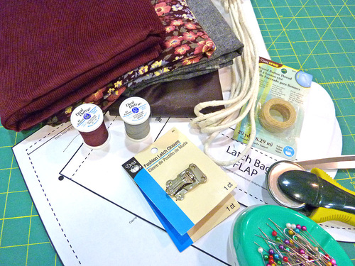 We offer a free pattern download below for the bag body, flap, and strap. You’ll print two copies to assemble the full patterns.