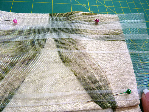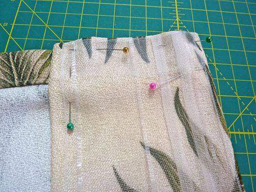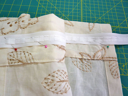 - When you reach the opposite side edge, the last pocket/loop should be within 1½” of the side hem. If it is not, just as above with Rod Loop Tape, simply unpin and fold the tape into small pleats between pocket/loops, removing ease until tape fits correctly and lays flat.