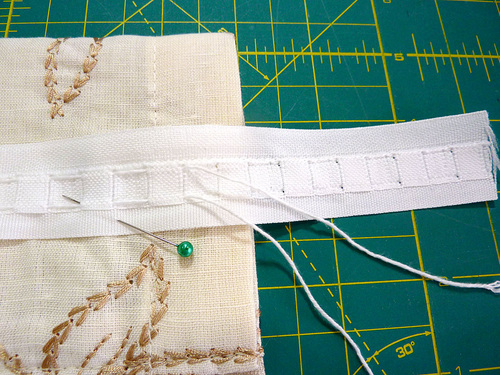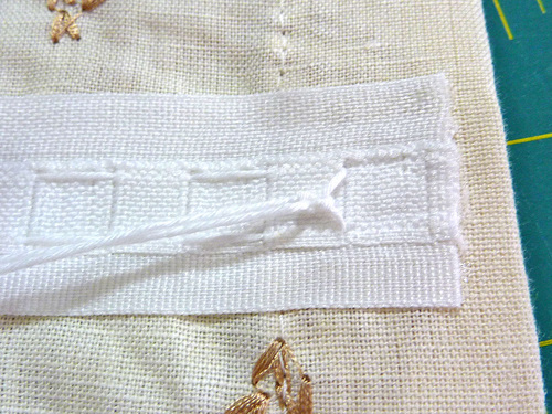 - Stitch the tape in place along all edges: top, bottom, and sides.