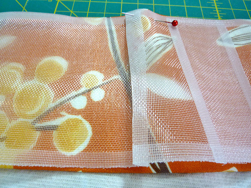 This product can be used for curtains as well as other situations, such making a fabric hiding panel for the front of a cabinet or along the base of a counter. The original Dritz product we used was iron-on, but this option is now more difficult to find, however, sew-on options are prevalent. Here is one we found at Amazon.