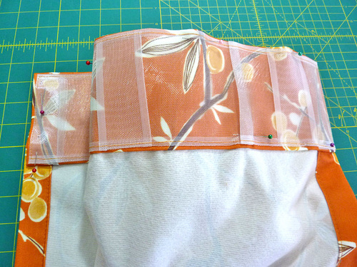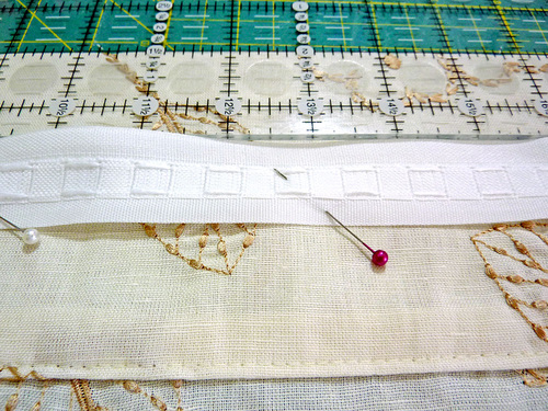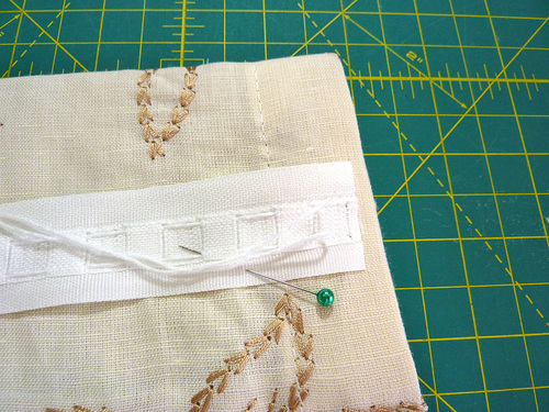 - When you reach the opposite side edge, the last loop should be within 2½” of the side hem. If it’s not, simply unpin and fold the tape into small pleats between the loops, removing ease until the tape fits correctly and lays flat.