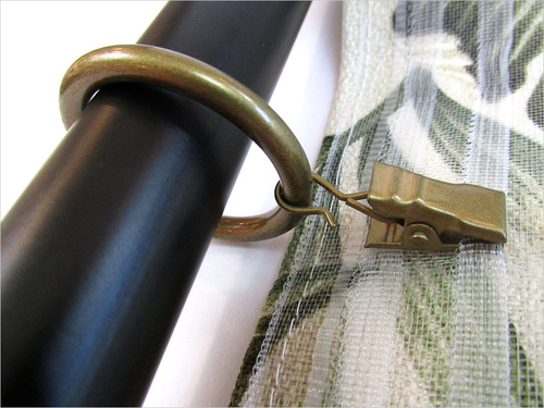 - Attach the clip rings into either the top or bottom row of pockets. If you use the top row, it allows space between the top of the curtain panel and the rod.