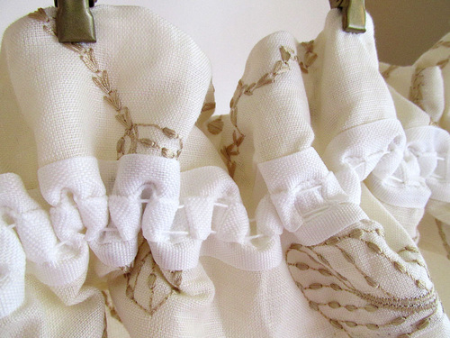 - It worked just as well to attach clip rings because the gathers don’t shift. We could have also used pin-on hooks.
