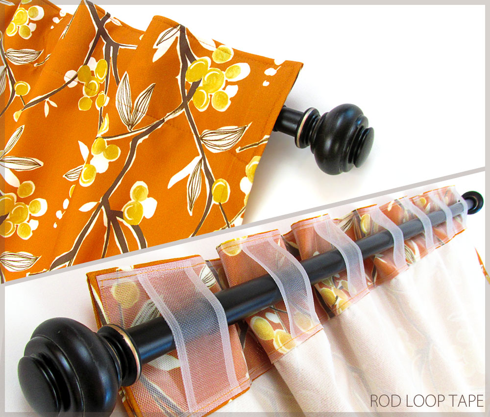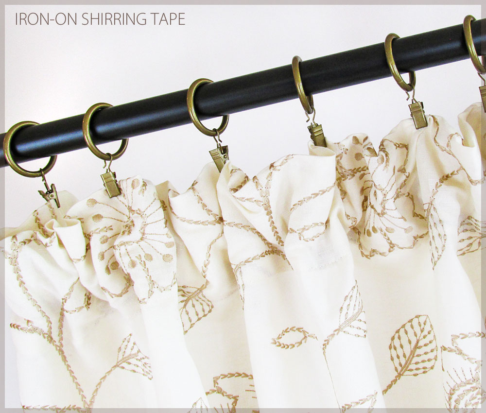 Window coverings are often one of the first DIY home décor projects people attempt. And rightly so; they’re usually simple panels with just a few hems – fast, easy, and so much more affordable than off-the-shelf options. However, figuring out how best to hang those pretty panels can be more of a challenge. We found three drapery tape options that solve the most common hanging alternatives: Rod Loop Tape, Clip Ring Tape aka Wave Curtain Tape, and Gathering or Shirring Tape – we originally used an iron-on shirring tape, but most options we came across recently were sew-on. Either should work great.