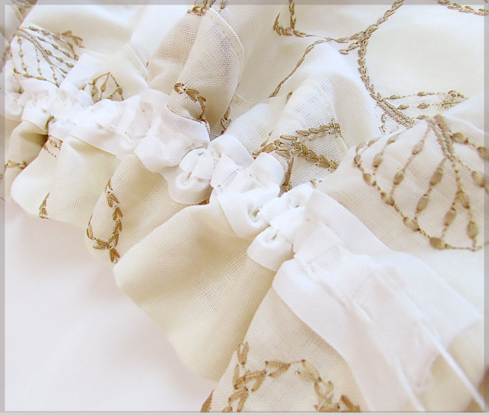 As mentioned above in the section on the Rod Loop Tape, you may wonder why you would need this product if you can simply make a channel with the top hem of your panel. When slipped onto a rod, especially with a narrow channel for a tight fit, the channel itself will “gather” when pushed open. You are right, and this is certainly a viable option. But the cool thing about shirring tape is that your gathers stay in position.