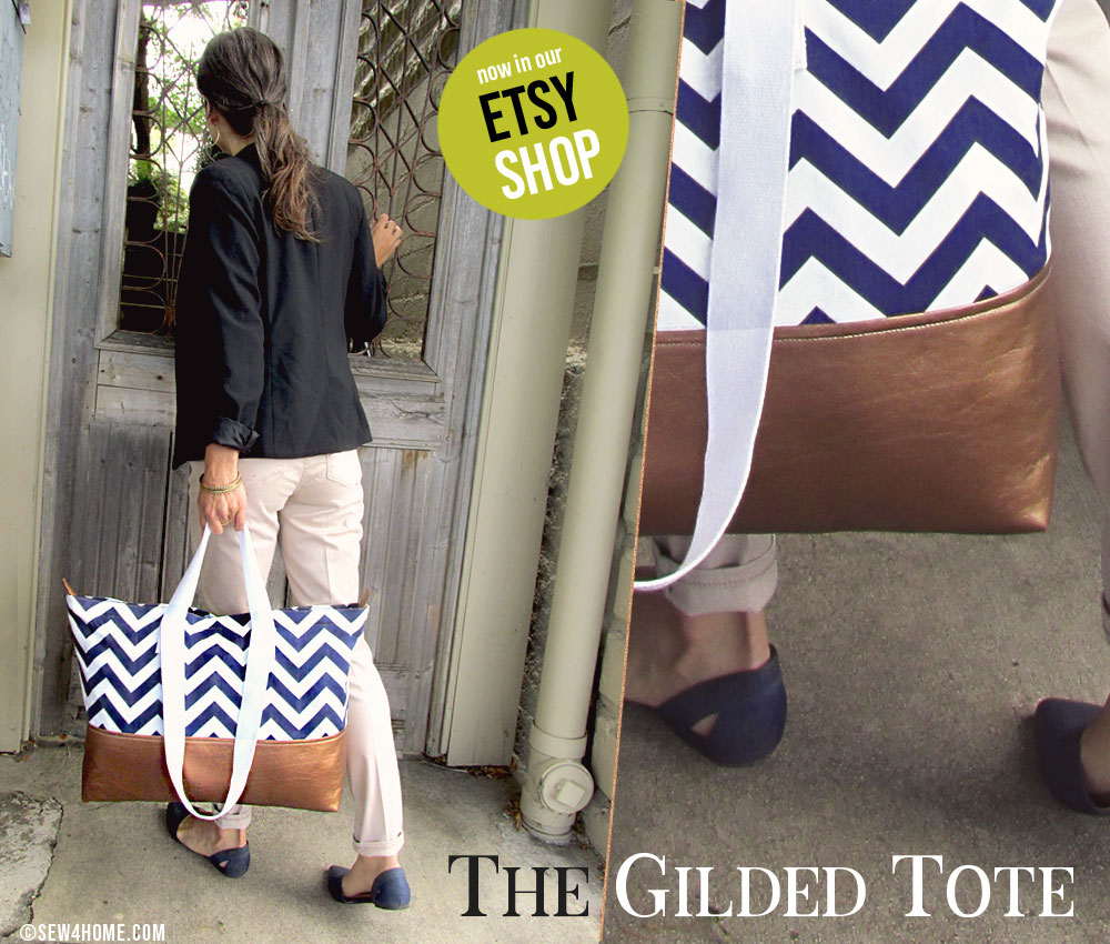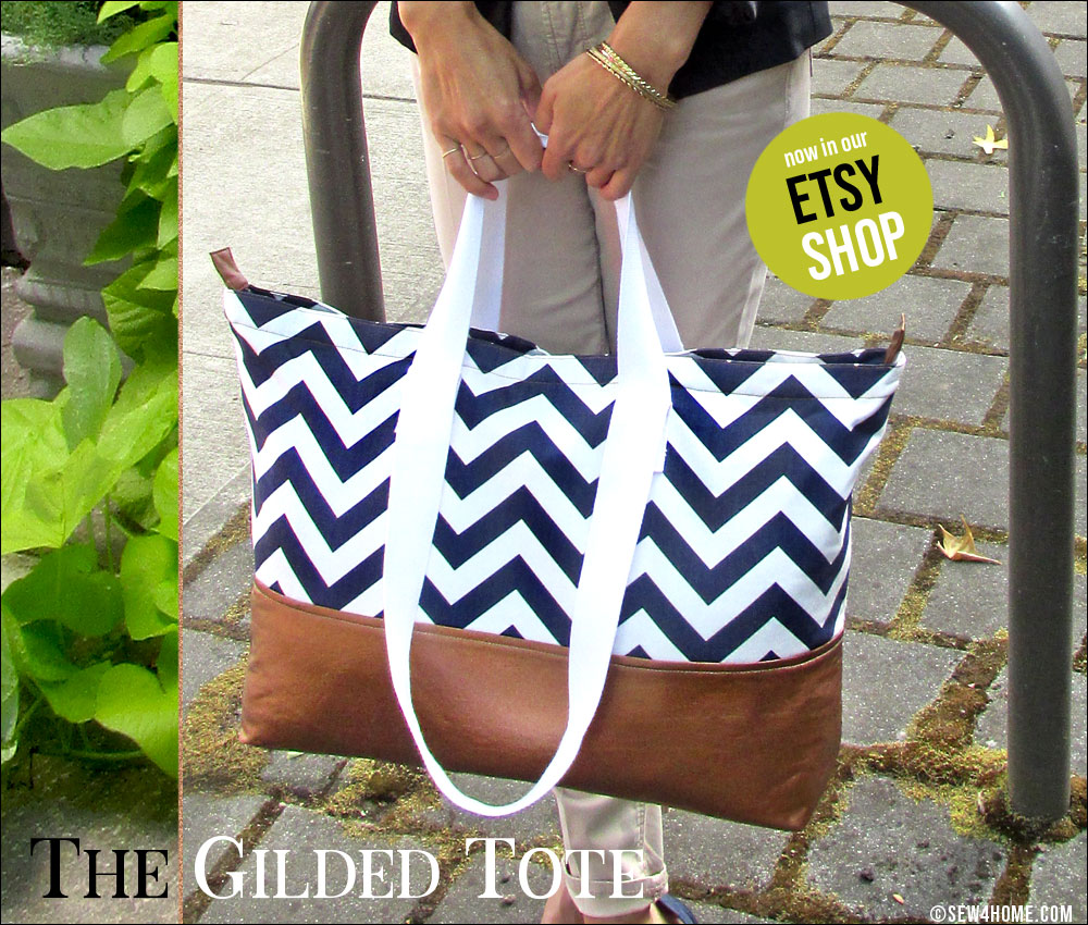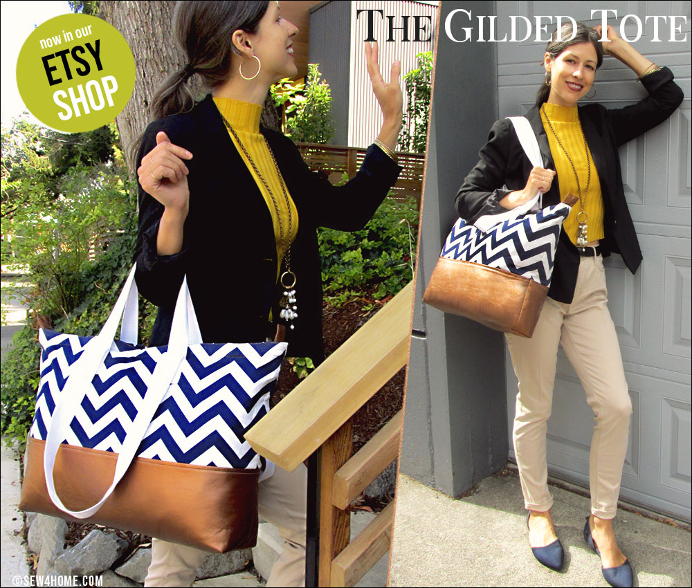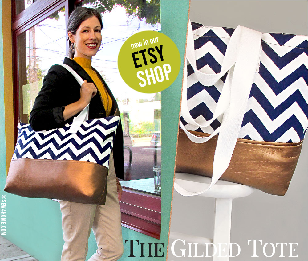 Click to our Etsy Shop to purchase the Gilded Tote pattern or any of our other available patterns, custom machine embroidery designs, our cool Sewing Survival patch, or our popular Cheat Card Set.