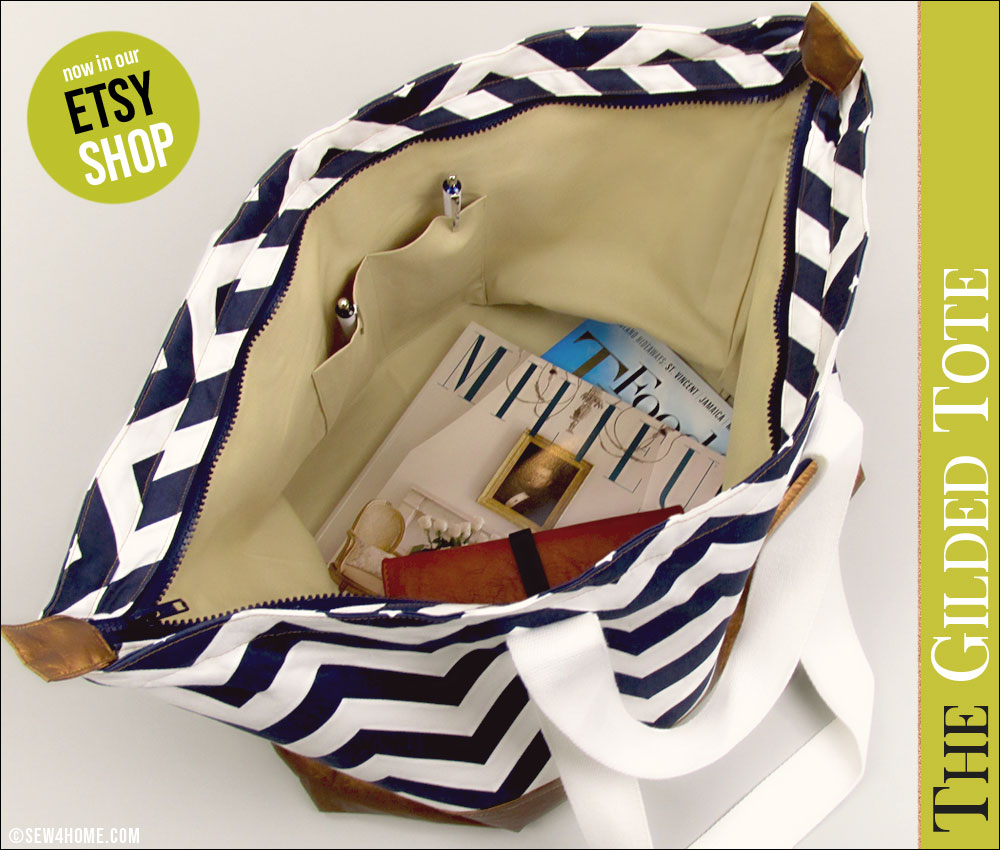 Who says functional can’t also be fabulous?! This generously-sized tote is a perfect carryall for everything from daily chores to weekend getaways. The popular pattern originally debuted “way back when” on the S4H site and was then updated to be featured in our debut Bags & Totes book. We’ve now brought it back, making it available for individual purchase by all our Sew4Home fans and followers as an exclusive pattern in our Etsy shop.