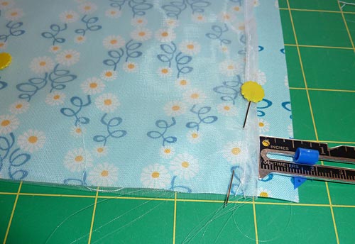 Measure 8″ in from the left hemmed edge and mark with a pin.