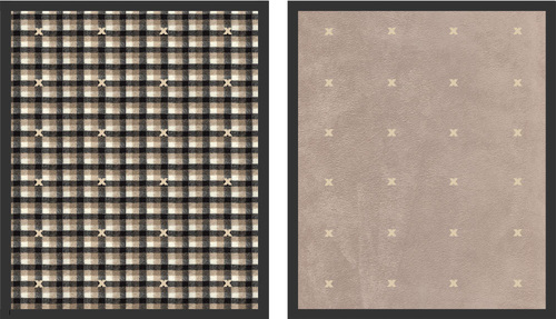 NOTE: Even though the Berber Check is quite wide (our sample was a full 60”+), so you could cut it 60” wide x 50” high, we do still recommend getting additional fabric in order to make your cut 50” wide x 60” high. This allows you the extra fabric needed to precisely center the check pattern side to side and top to bottom. - From the backing faux suede, cut ONE 50” x 60′ rectangle.