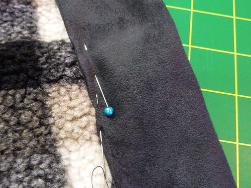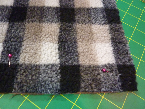 - Place the layered blanket faux suede side up and flat on your work surface.