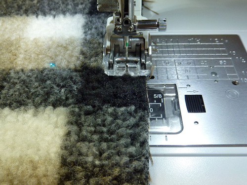- Hand stitch the binding in place – as you might a traditional quilt binding, hiding your stitches within the deep nap of the Berber Check Sherpa.