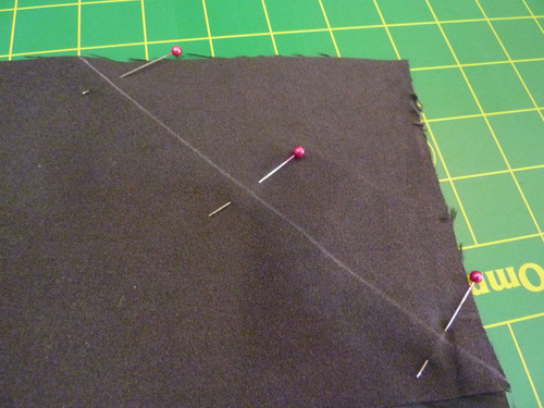 - Draw a diagonal line across the overlapped ends. Pin along the drawn diagonal line.