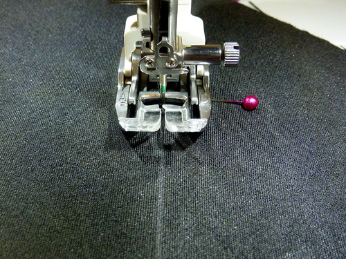 - Attach a Even Feed or Walking foot or engage your machine’s fabric feeding system.