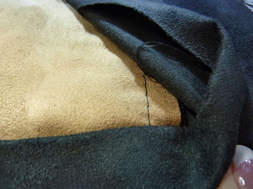 - Place the faux suede down first, right side down.