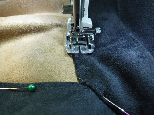 - If necessary, re-thread the machine with thread to best match the binding faux suede in the top and bobbin. Re-set the stitch length to normal.