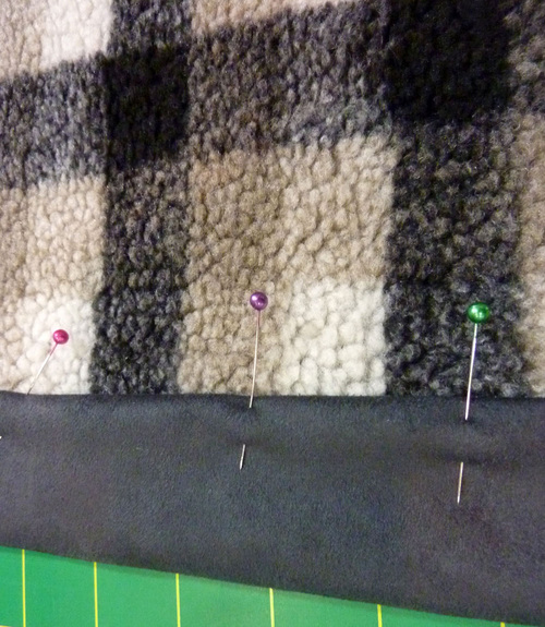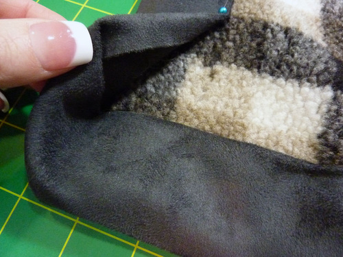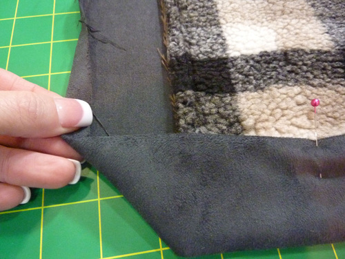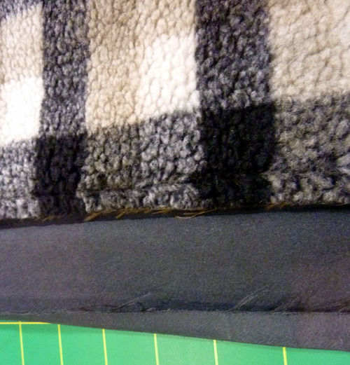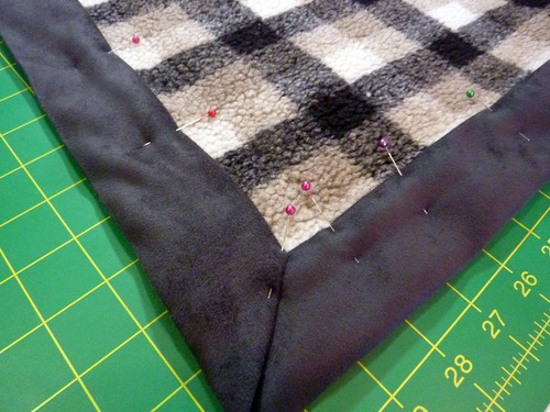 - Flip over the blanket and fold the binding down into position along its original crease line. The folded edge is now against the front (the sherpa side) and should just cover the seam line.