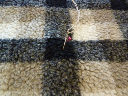 NOTE: The X ties on the back of the blanket will indeed be visible so take the time to measure and mark for equal spacing, and make your X stitching as consistent as possible from tie to tie.